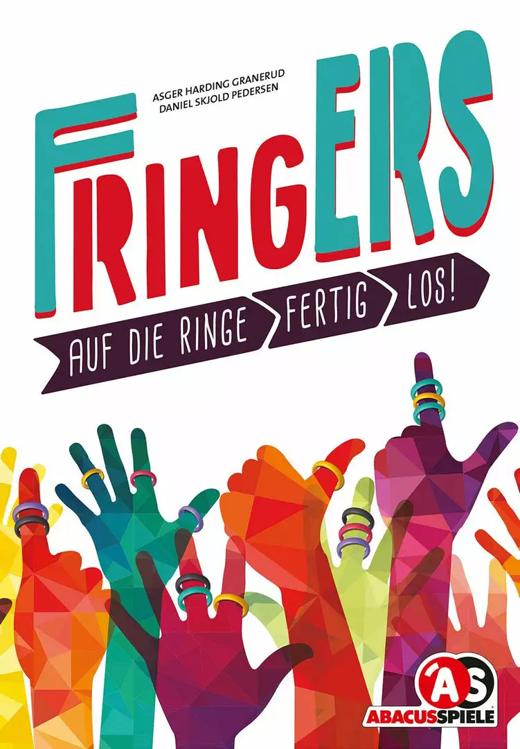 Fringers is a co-operative action game. You play as a team and based on a goal card try to rearrange the rings on your fingers before time runs out. The players are allowed to give their rings only to their neighbor on the left, while your neighbor on the right will put new rings on your fingers โ hopefully with the right color on the right finger.