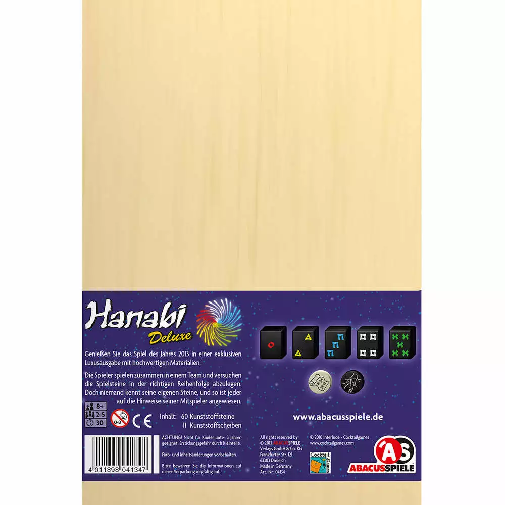 Hanabi—named for the Japanese word for “fireworks” and consisting of the ideograms “Flower” and “Fire”—is a cooperative game in which players try to create the perfect fireworks show by placing the cards on the table in the right order.