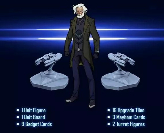 This is a full LEGION expansion that includes the Hammersmith miniature, character board, and custom Gadget cards and Upgrade tiles that can make him even more powerful! Combined with his Mayhem ability upgrades, he adds an entirely new and exciting story line to the Agents of Mayhem game!