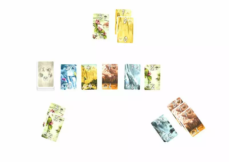 In DAO, the player is constantly faced with a choice: Should he choose the safe route when he is on the train? Then he takes a card from the display. Or he trusts his luck? Then he draws a new card, which he adds to the display. But be careful crossing the cards on the table the value of ?? 12 ??, the player must take all of these cards per se. At the end only count the cards of one color pluses ?? all other minuses. The player with the most points wins.