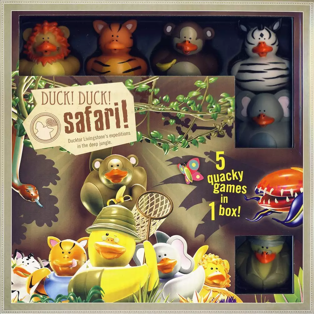 Duck! Duck! GO! SafariAdvanced Primate Entertainment (Impressions)Duck! Duck! SARARI! takes rubber ducky gaming into the tropics. Inside this bulging box of fun you will find the famous jungle explorer Ducktor Livingstone, five safari animal duckies and all the pieces for five original andexciting games.