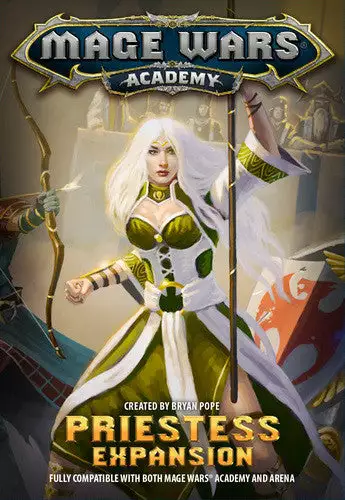 Mage Wars: Academy – Priestess Expansion includes a new mage for use in both Mage Wars: Academy and Mage Wars: Arena. Now you can play as a holy Priestess competing to prove that the way of light is absolute by letting her smite the wicked and summon virtuous allies.