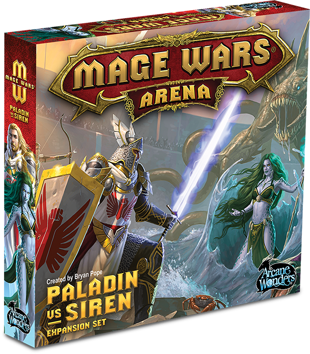 Expand the world of Mage Wars with two powerful mages and hundreds of new spells in Mage Wars Arena: Paladin vs Siren Expansion Set: