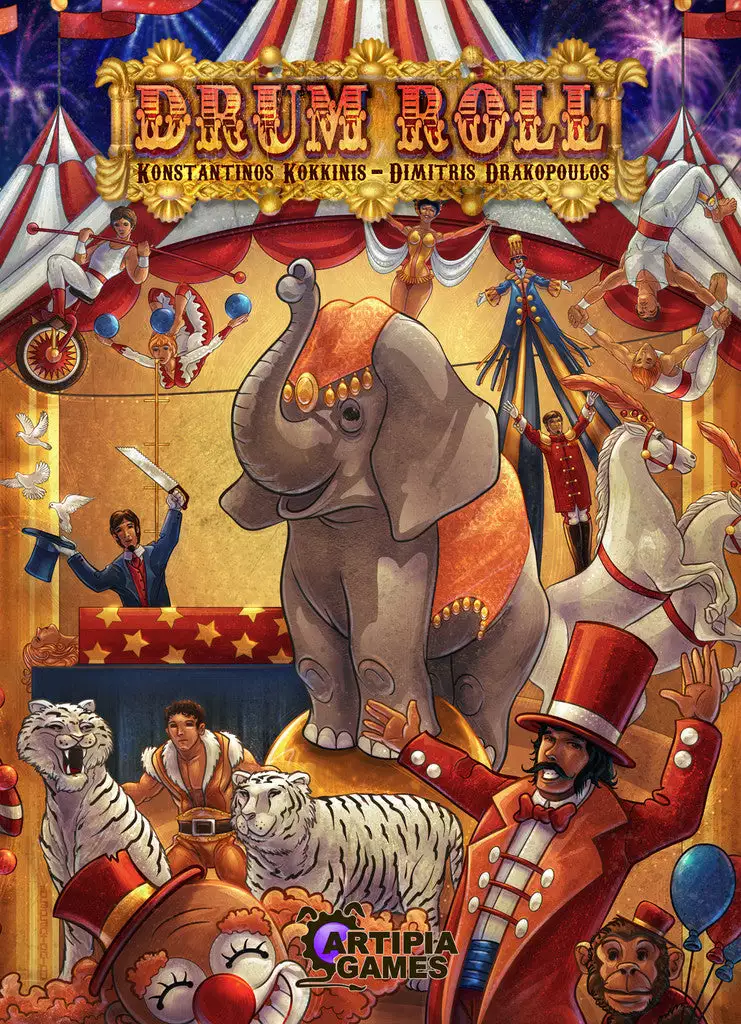 In Drum Roll each player takes over the role of a circus owner in the early 1900s. Each player moves around Europe hiring performers and giving shows.