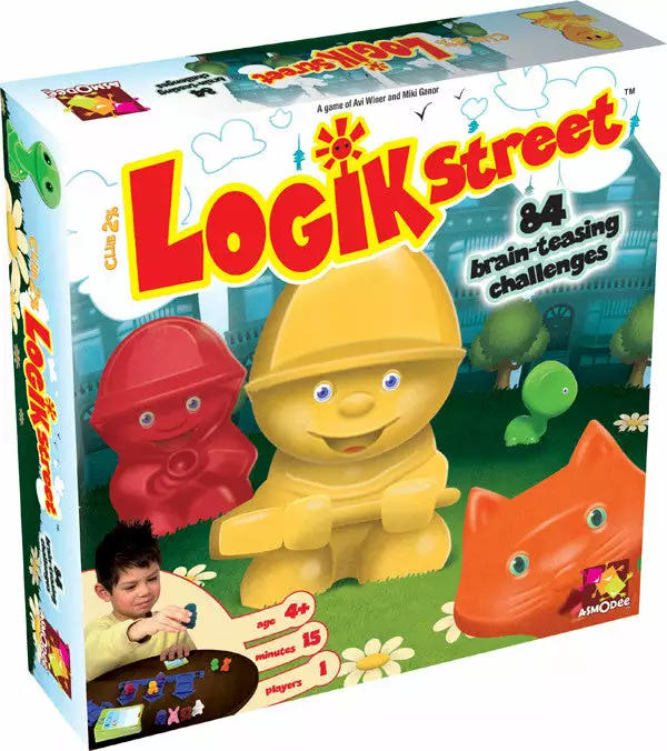 A game of simple and witty logic for the whole family! With Logik Street, discover 84 challenges that increase in difficulty with every card! The goal of the game is simple, and LOGICAL! The player select a card, and by following the clues on the card, they guess where the pets live with their owners. Once the player has finished placing their characters, they turn the clue card over to see the solution.