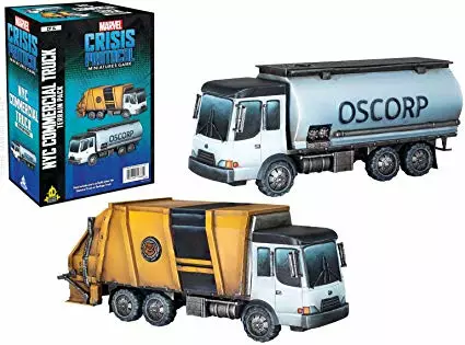 Add some size to your Marvel: Crisis Protocol battlefield with the NYC Commerical Truck Terrain Pack. This pack includes parts to build either a garbage truck, perfect for cleaning up after a super powered rumble, or a chemical truck, sure to be filled to the brim with some kind of dangerous industrial agents.