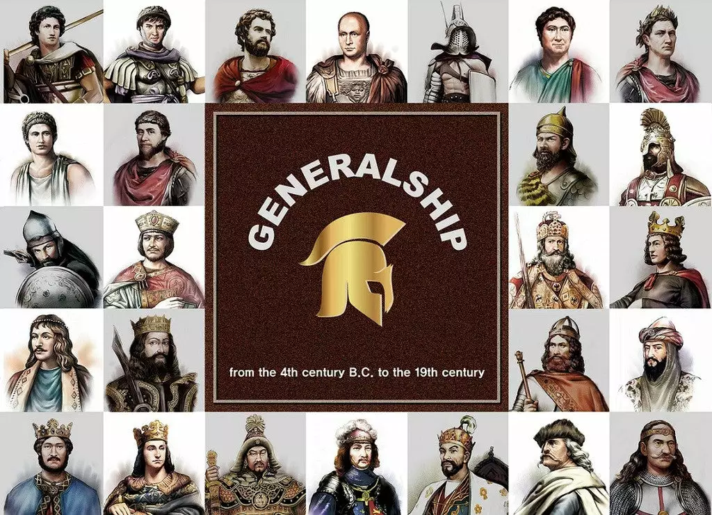 Players compete for generalship through 49 highly famed generals in Europe from the 4th century B.C. to the 19th century. Players run the internal political system by increasing population, developing a new technology and the external politics by training army and managing relationship with an alliance. When a battle occurs, players present not only the army and but also tactic cards. Players receive limited tactic cards, so they need to manage cards in hand.