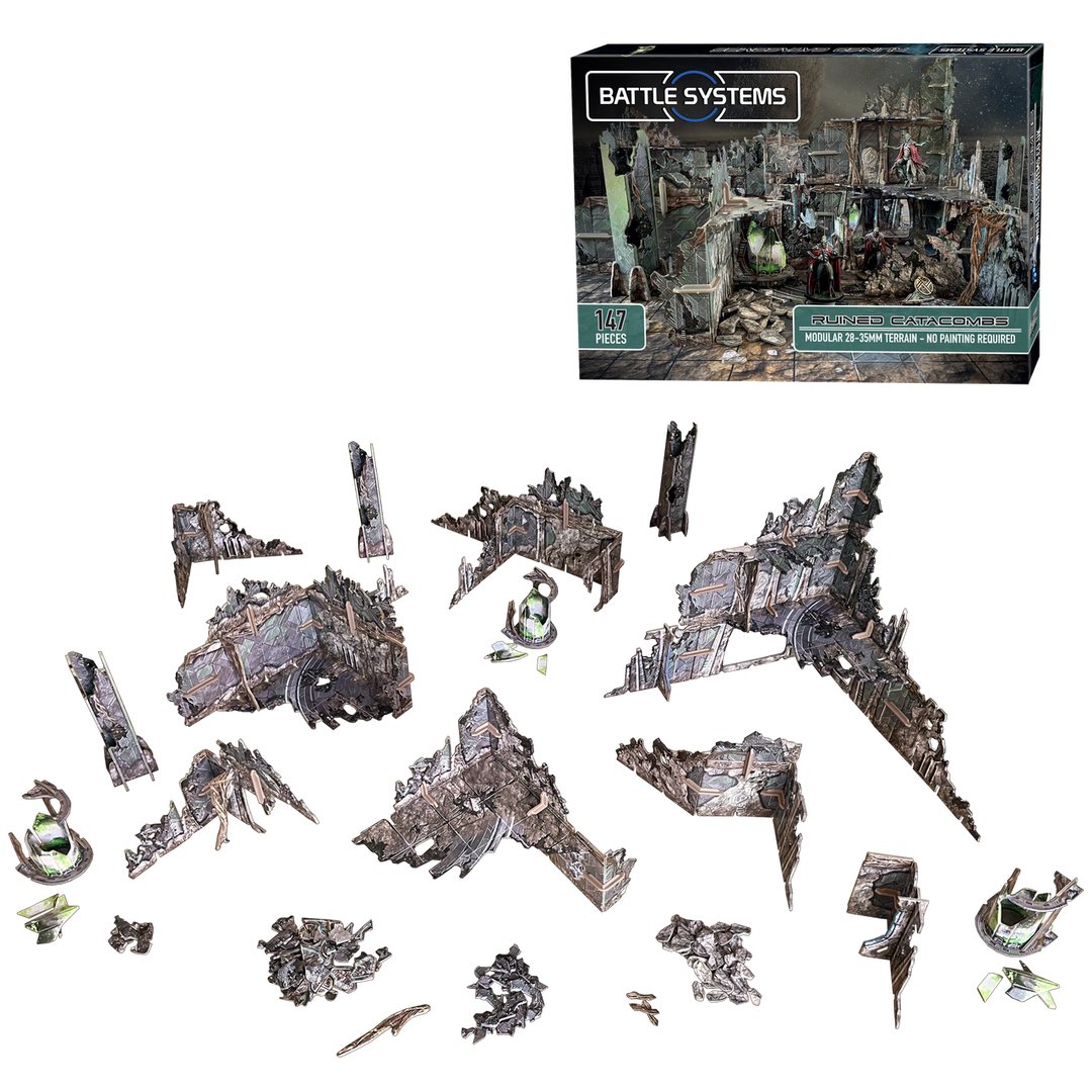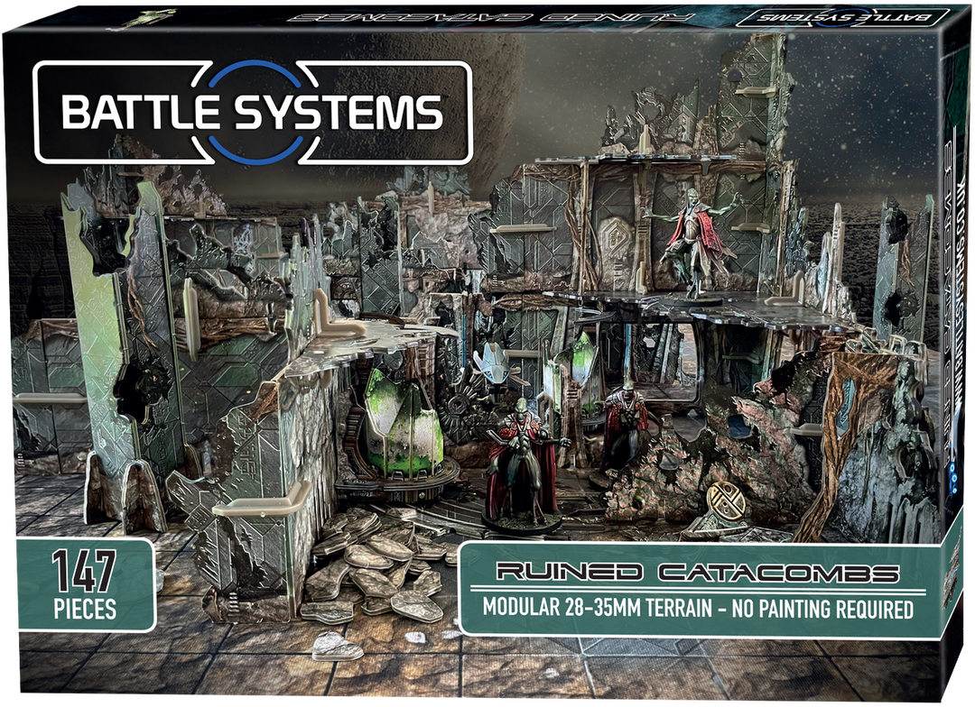 This box contains everything you need to build a multi-level ruined temple, suitable for all 28-35mm sci-fi games on a mysterious alien planet. All the pieces are modular and can be assembled in any combination you choose for a different set-up every time. The set can be expanded with other sets from the Battle Systems terrain range and is directly compatible with the Alien Catacombs and other Core Space: First Born terrain.