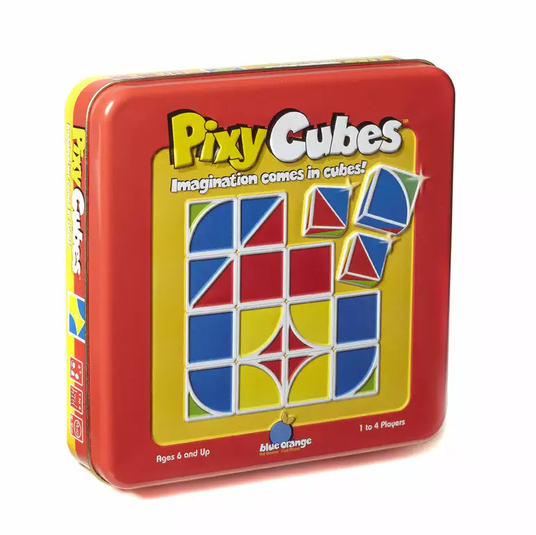 Arrange colorful cubes in different designs with Pixy Cubes. Each cube is colored green, red, yellow, and blue either as solids, halves, or in two variations of crescent shapes. You can race for speed, challenge your memory, or simply create pictures and designs as a pastime.