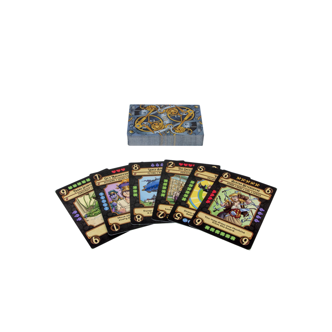 Girl Genius: The Works is a non-collectible card game that consists of several standalone decks of cards. You can play the game with any one of those decks, while also being able to combine some or all of those decks into a single deck for a longer game or a game with more players. Each deck contains many unique cards, but the gameplay is the same in all cases.