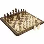A beautiful Chess game with a wooden board and wooden pieces. The underside of the pieces is covered with velvet for a pleasant play sensation.