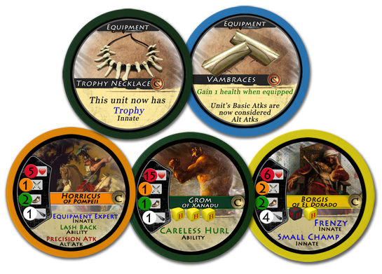 Blade’s Edge: These 10 chips include an all new Champion AND Equipment for each of the 5 Cities that Hoplomachus has to offer. These will be the start of what will be the ‘customizable’ portion of the game. Champion selection and Equipment option will be determined before each battle begins!