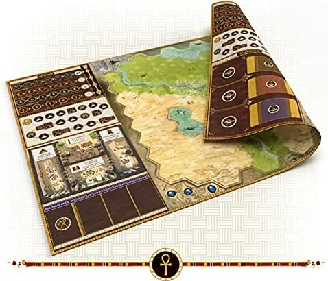Kickstarter Exclusive Optional playmat version of the Ankh: Gods of Egypt board. Made out of thick 3 mm neoprene, this full-color playmat has border stitching for extra durability.