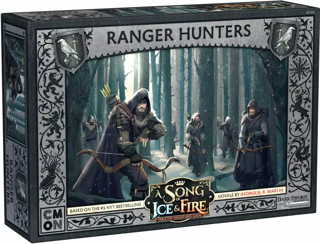 The Ranger Hunters unit box for the A Song of Ice and Fire: Tabletop Miniatures Game gives Night’s Watch Commanders a fast and agile unit on the battlefield. Their short bows can reach out and attack enemies before they can fight back. In melee, their Swift Strike attack allows them a free Retreat maneuver afterward. They also gain a bonus when attacking enemies that have yet to activate, allowing them to reroll misses once.
