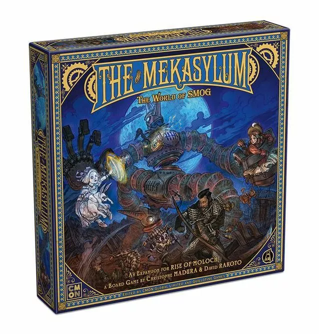 The Mekasylum, an expansion for the game The World of Smog: Rise of Moloch, introduces new mechanics and brings a new three-mission campaign to Rise of Moloch and comes with: