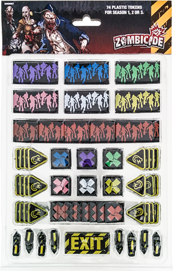 74 plastic pawns for any Mission: Exit 1 piece, 24 pieces Noise, 24 markers of progression, 8 pawns red Lens, 6 colored pawns Objective 5 Zones 6 Zones Red Invasion and Invasion colorful.