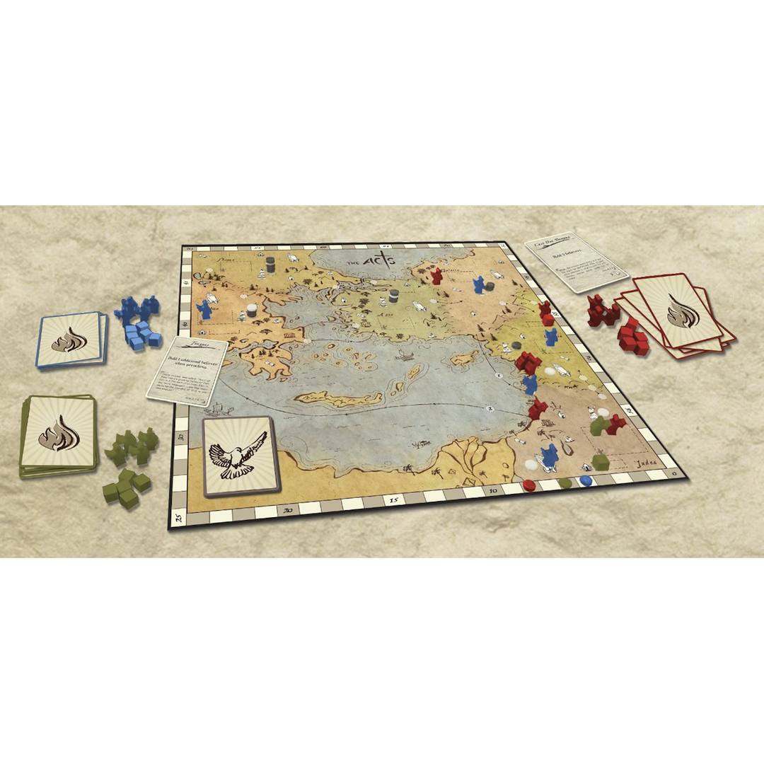 In The Acts, you take on the role of disciples in the early church. Starting in Judea, you can spread throughout the Roman Empire, sharing the gospel in the goal of saving souls. Each turn you can preach, pray, plant churches, write letters, disciple others, and perform mighty miracles. Race to reach the farthest provinces first, or focus your strategy around the spiritual gifts you have prayed for. With multiple paths to victory, every game is unique. The game board features the familiar map of the first missionary journeys and each card in the game highlights scripture passage. The Acts is faithful to the Bible, yet requires no biblical knowledge to play and enjoy.