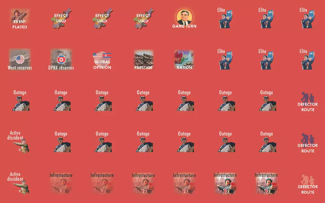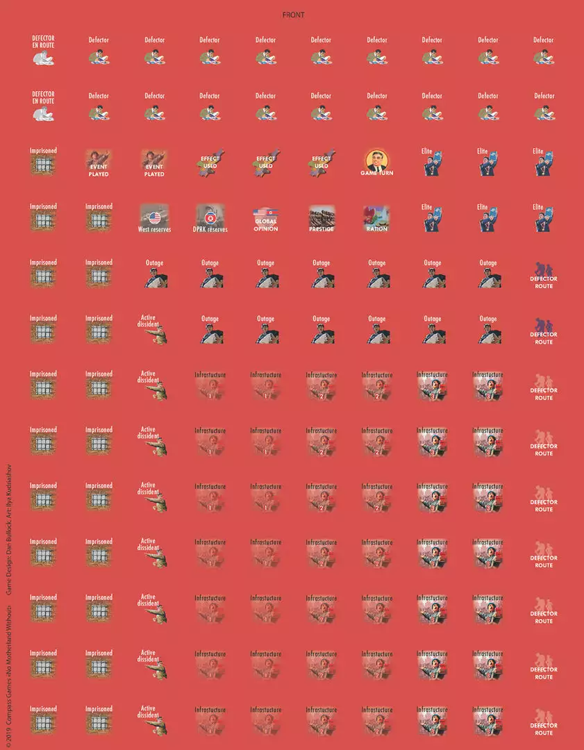 No Motherland Without is a card-driven strategy game for two players. The game depicts the struggles of the Kim Regime from 1953 to present day North Korea against the West.