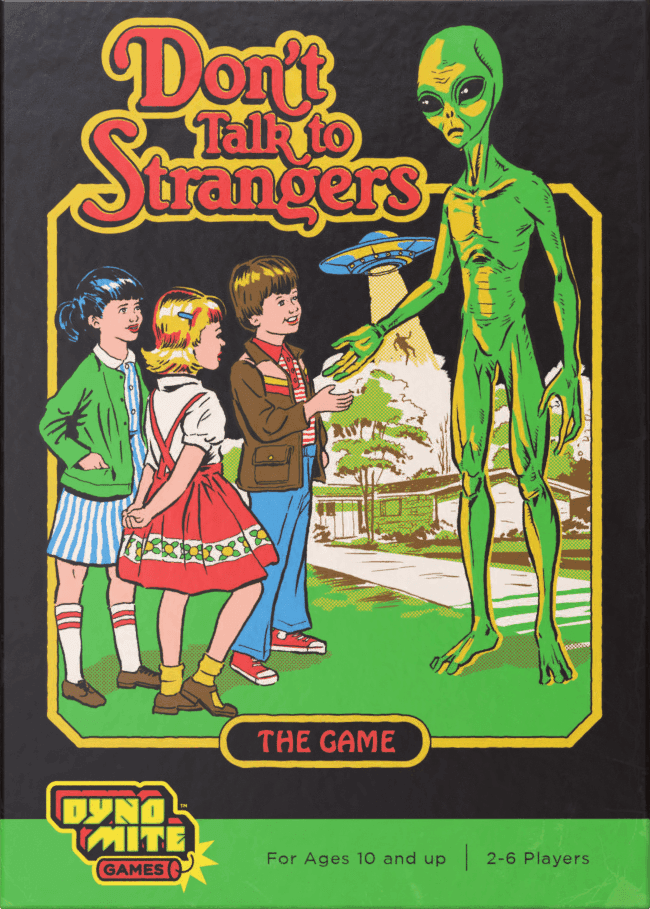 School’s out but otherworldly STRANGERS are here! Mom & Dad haven’t caught on yet so you’re on your own, kiddo. Play your cards as efficiently as you can, helping to navigate your Kids one at a time from SCHOOL to a SCORING space–in order to score as many points as you can before the neighborhood is completely overrun with STRANGERS!