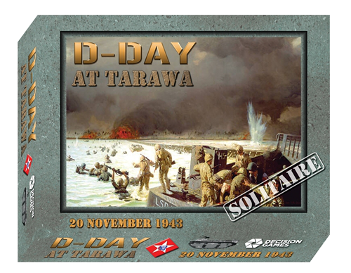Based on John Butterfield’s groundbreaking D-Day at Omaha Beach system, this solitaire game presents the critical days of fighting at platoon and company scale. You command the invading American forces against dug-in Japanese defenders, which are controlled by the game system. Tarawa covers the landings on Betio Island in November 1943, and the operations of the US 2nd Marine and 27th Infantry Divisions to clear it — the first heavily contested landing of the Pacific War. The battle for the tiny Island raged for four days and, when it was finally over, fewer than 200 of the 5,000 Japanese defenders remained alive. One map, two counter-sheets and 55 cards.