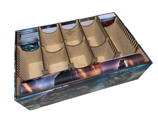 Our storage solution for the Star Realms Universal Storage Box takes a great start and makes it even better. our solution offers 895mm of card storage in five lanes and stores two play mats.