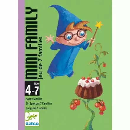 Djeco’s Mini Family card game is the classic game of Happy Families, enhanced by Djeco’s beautiful illustrations. Comprised of 28 cards, this game includes 7 imaginary families, with 4 characters.