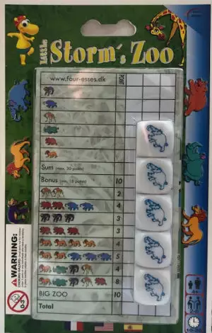 You must indicate the score obtained in one of the notepad boxes. There is no need to follow the notebook pages in order. Each box can only be used once. If you cannot indicate your score, for example if all the boxes of the notepad provided for this purpose have already been used, you write “0” in one of the other boxes available. If the total number of points in the upper half of the page is 18 or more (1 point for identical dice), you receive a bonus of 10 points. With 5 identical dice you get the Big Zoo.