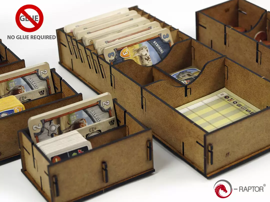 e-Raptor Insert compatible with Great Western Trail is a perfect accessory designed to organize and improve gameplay of the board game.