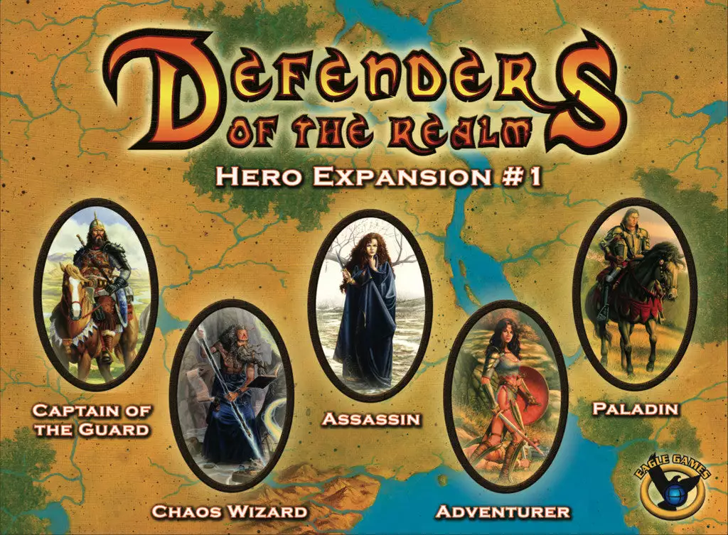 Defenders of the Realm: Hero Expansion #1 includes four new heroes – with a miniature and character card for each hero – along with six new global effects cards and five tokens for use with the Defenders of the Realm base game. (This expansion also includes a Paladin miniature to replace the onein the base game.) The new heroes introduced in this expansion are: