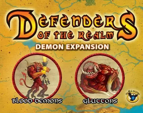 Defenders of the Realm: Demon Expansion is a minion pack containing twenty Gluttons and five Blood Demons that can replace the generic minion pieces in the base game. This expansion also includes Minion Cards that describe how these Minions are to be used when playing Defenders of the Realm.