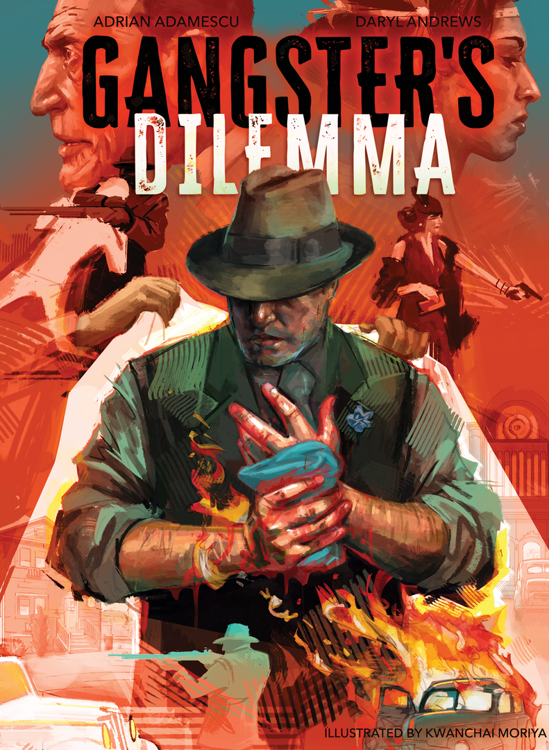 In Gangster’s Dilemma, you play a gangster eager to satisfy the Mob Boss’ demands. Each round, you will secretly choose to loot one of the city’s hot spots, in hopes of eluding the cops, avoiding other gangsters, and grabbing crates, art, jewels, gin, and cash when possible. But the cops are on patrol at all times and they randomly search those same hot spots. If caught in the presence of another gangster, do you pay bribes to the cops, stay silent, or rat out your fellow gangsters? What a dilemma!
