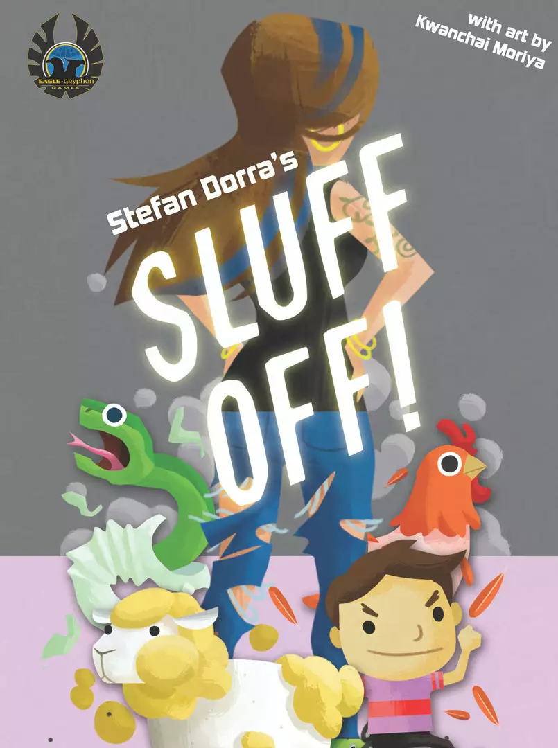 The gameplay for Sluff Off! follows the standard trick-taking formula: The cards are numbered 1-15 in five different suits, and blue is always trump. If someone leads a color, you must follow suit if you can; otherwise, you can throw off a card or trump the trick.