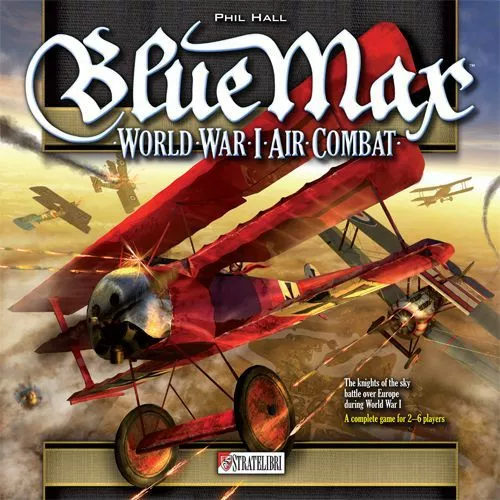 In the midst of a tragic war, WWI fighter pilots fought bravely in a modern version of the medieval joust, much like the gallant knights that preceded them. Their survival depended greatly upon not only their skills, but also the quality of their aircraft. Blue Max, the famous game of World War I aerial combat, is back with new graphics and updated rules! In Blue Max, two to six players take the roles of pilots belonging to one of two teams, either the Allies or the Central Powers and aim to shoot down as many enemy planes as possible. With rules that account for altitude, fuel reserves and the maneuverability of your plane, Blue Max places you squarely in the cockpit and you’ll need to both master your machine and outwit your foes in order to win. The famous Philip Hall aerial combat game is back with new graphics and updated rules. Components: 1 rule-book, 1 game board (with a map on each side), 6 player screens (3 per team), 18 maneuver charts, 18 plane cards, 144 small size cards, 3 punch boards with 168 cardboard pieces, 60 tracking sheets, 6 custom dice.