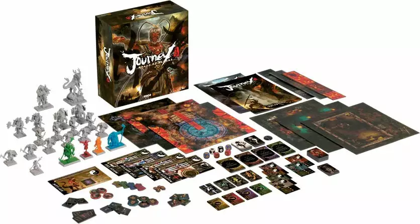 In Journey: Wrath of Demons, a cooperative miniatures board game based on a classic Chinese novel, four Pilgrims band together to search ancient China for the Sutras, sacred scriptures that will bring salvation to a world overrun with Demons. After fighting different Bull Demon minions, the climax of the game is the battle against the Bull Demon King. Game cards and custom dice combine for fast, tense action and critical choices enhance the Pilgrims’ skills during the game.