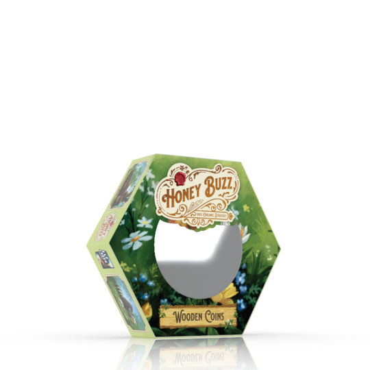 Improve your copy of Honey Buzz with this premium set of wooden coins! These coins are laser cut and etched on both sides, painted and dyed to give them their unique look. Use them to replace the punchboard coins found in Honey Buzz.