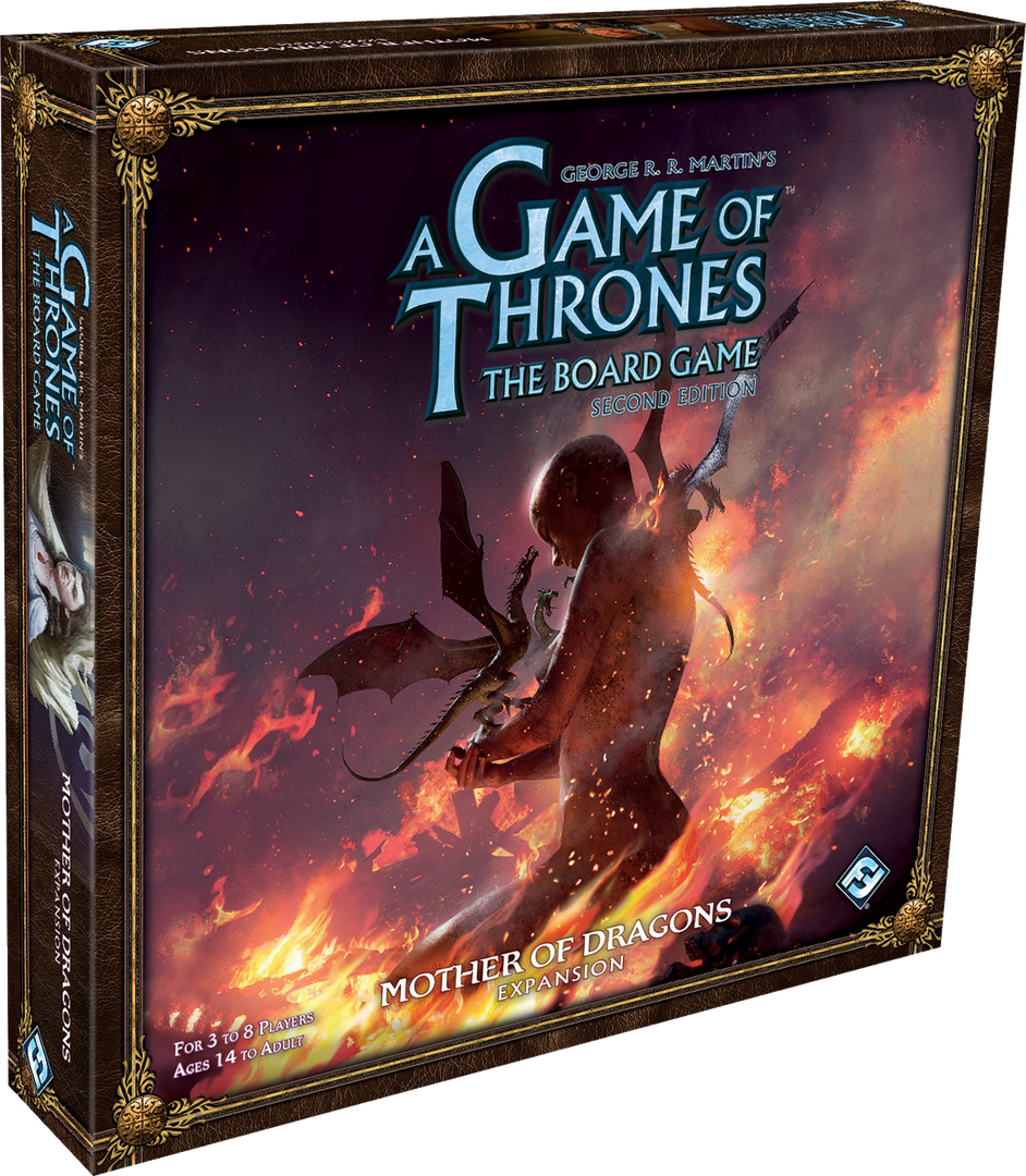 Cross the Narrow Sea with the Mother of Dragons expansion for A Game of Thrones: The Board Game! Clawing their way into power, this expansion includes a side board of the Free Cities of Essos and an overlay of the Eyrie, as well as new characters and mechanics to bring House Targaryen and House Arryn into the fray. As you make your claim to the Iron Throne, you can call other Houses to your cause with the new vassal mechanic, or even ask for aid from the Iron Bank of Braavos. But be cautious, for the Iron Bank will have its due, and if your campaign proves to be a poor investment, the money lenders’ retribution will be swift.