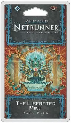 Explore the more transcendent qualities of life on the Network. The idea of an expanded consciousness runs throughout The Liberated Mind, the fifth Data Pack in the Mumbad Cycle forAndroid: Netrunner, and you’ll find the mysterious Temple of the Liberated Mind given shape, alongside several of its members and their philosophies. Sixty new cards (including a complete playset of nineteen different cards) allow Runners to explore life, death, and rebirth in the virtual realm. Meanwhile, Corps gain new means to counter the Runners’ efforts and to use the Runners to further their own agendas.