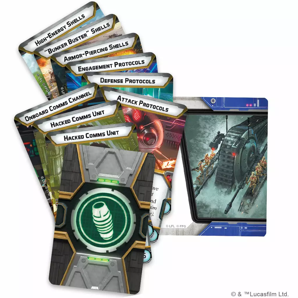 This expansion contains everything you need to add a NR-N99 Persuader-class Tank Droid to your Separatist armies as a heavy unit. The beautifully detailed, unpainted miniature features two option B1 battle droids that it can ferry into battle and a unit card outlines all of its weapons and systems. Finally, nine upgrade cards invite you to outfit your NR-N99 Persuaderclass Tank Droid with additional shells, comms, and programming.
