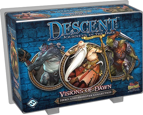 Visions of Dawn offers ten plastic figures previously only available through the first edition of Descent. You may take up arms with four heroes of the realm: Master Thorn, Nara the Fang, Ispher, and Sir Valadir. You may play as the overlord, commanding a monstrous legion composed of ogres, trolls, and manticores. To expand your experience as hero or overlord, this Hero and Monster Collection offers two brand new quests, Trucebreaker and Visions of Dawn, each challenging you to quest and battle for the future of the realm.