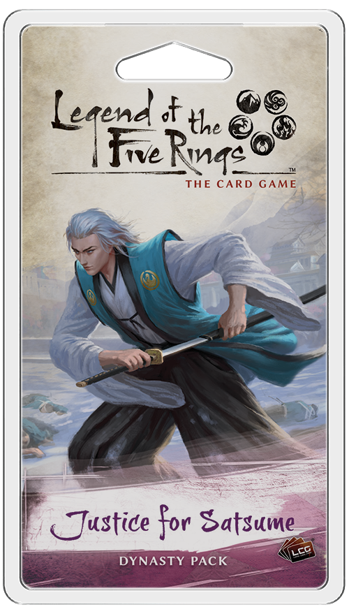 Step into the world of Rokugan with Justice for Satsume, the third Dynasty Pack in the “Inheritance” cycle for Legend of the Five Rings: The Card Game! Justice for Satsume continues the themes of the “Inheritance” cycle, placing an emphasis on Courtiers and Bushi, introducing two new disguised characters ideal for surprising your opponent, and two Clan Champions!