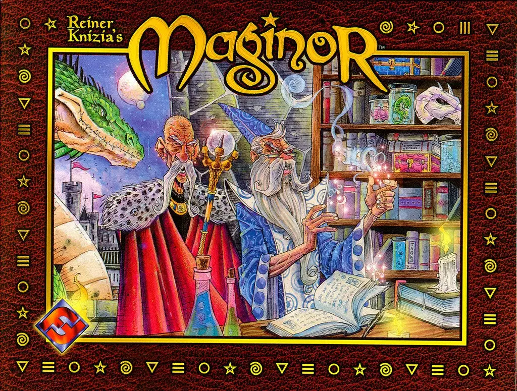 This is a re-working of Reiner Knizia’s Vegas. Maginor adds some cards, spells, and a different “dueling” mechanic.