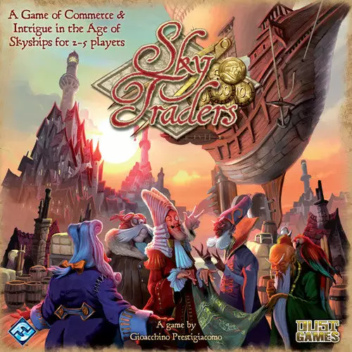 Command your own skyship and become a master merchant in Sky Traders, a board game of commerce and intrigue for two to five players. Evade the ruthless Wind Pirates as you collect influence with the powerful Sky Guild. Manipulate the commodity market using your powers of persuasion. Through clever trades and resourceful captaining, you can seize the title of Master of the Sky Guild!