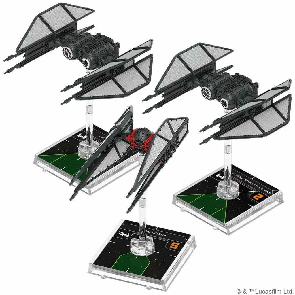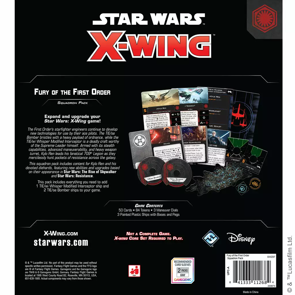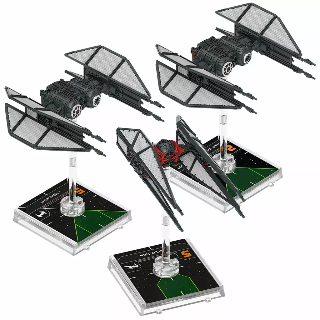 This squadron pack includes content for Kylo Ren and his devoted diehards, featuring new abilities and upgrades based on their appearance in Star Warsâ„¢: The Rise of Skywalker and Star Warsâ„¢: Resistance. This pack includes everything you need to add 1 TIE/wi Whisper Modified Interceptor ship and 2 TIE/se Bomber ships to your games of Star Wars: X-Wing! 14 pilot cards create a pool of versatile pilots for these ships which can be customized in a myriad of ways with the 32 included upgrade cards. Players eager to play with these ships can as soon as possible can utilize the four included Quick Build cards which will get these powerful ships on the table in record time with effective suggestions on upgrades and configurations.