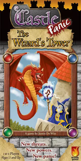 The Wizard’s Tower is an expansion to the board game Castle Panic. It is not a stand-alone game and requires Castle Panic to play. The Wizard’s Tower is a cooperative board game for 1 to 6 players ages 12 and up.