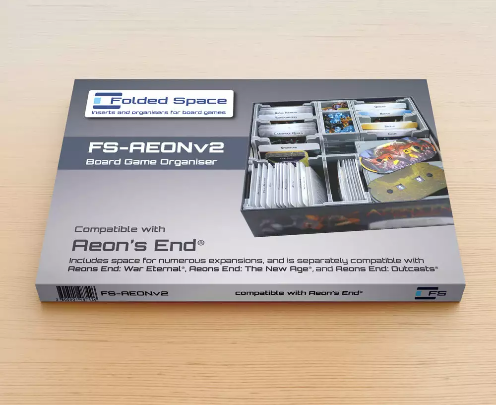 Note: Insert designed for game with external box dimensions of 28.0 x 28.0 x 9.0 cm. The insert is also now compatible with the larger box of the Pegasus Spiele edition, dimensions 29.7 x 29.7 x 8.6 cm. This is the revised design for Aeon’s End®, the original insert FS-AEON.