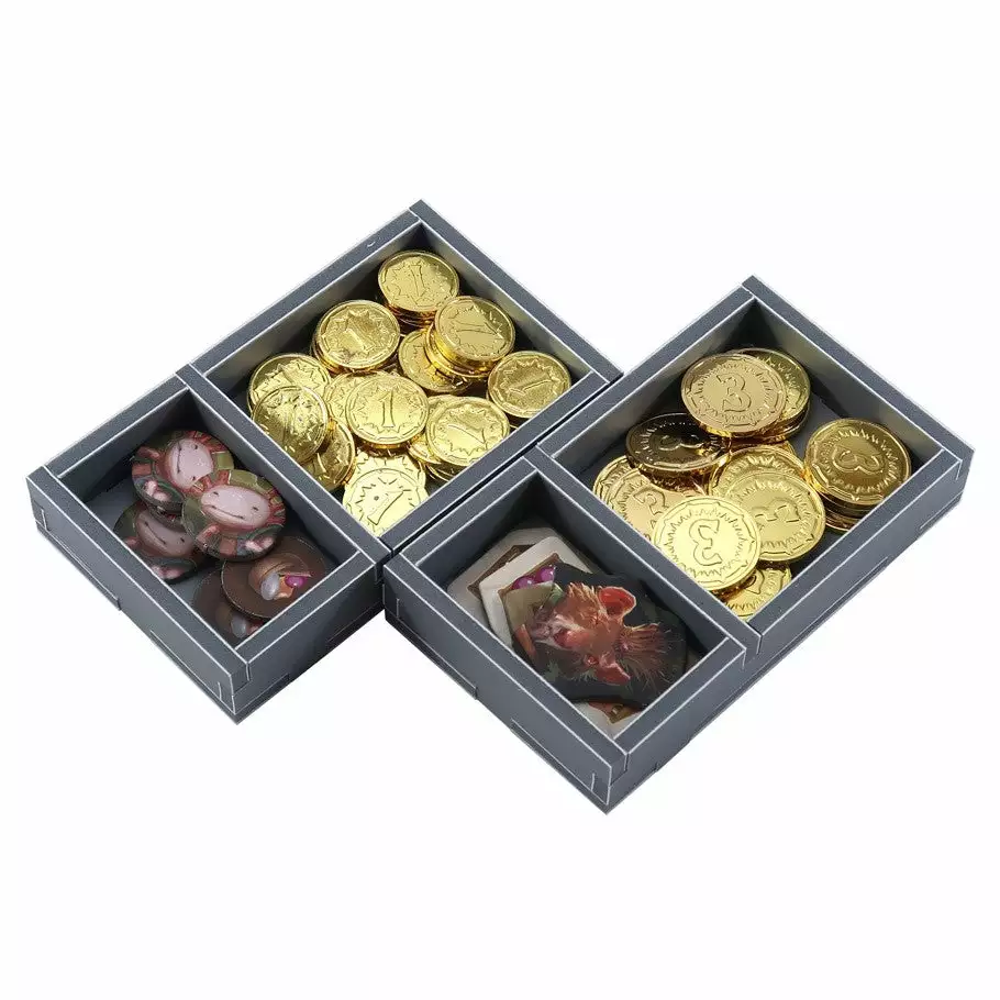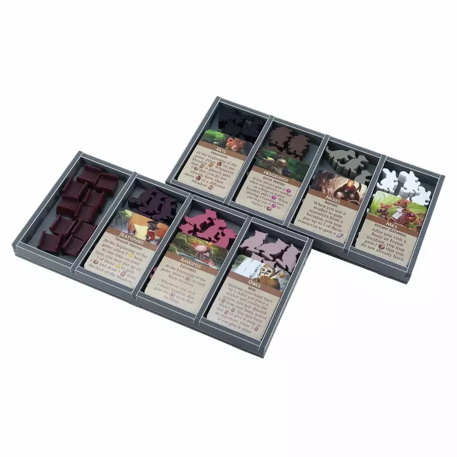Insert compatible with Everdell® including all Collector’s Edition content and the Pearlbrook®, Bellfaire® and Spirecrest® expansions. The design provides both efficient storage and improved game play. Many of the trays can be utilised during the game, and they greatly aid set-up and clear-away times. There is space for all cards to be sleeved.