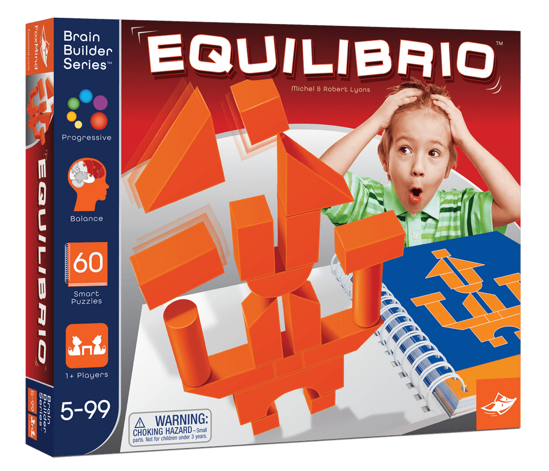 Players will need dexterity, ingenuity and perseverance to succeed in building the amazing vertical structures featured in Equilibrio. Some structures may seem almost impossible to do, but careful planning and persistence will always be rewarded with the satisfaction of completing the challenge. Equlibrio is part of the Architecto line, which consists of 4 exquisite games of spatial visualization. In these games, players progress at their own rhythm, as puzzles gradually become more challenging. All games include the same set of Geoblocks and a spiral book with 6 color-coded levels of difficulty.