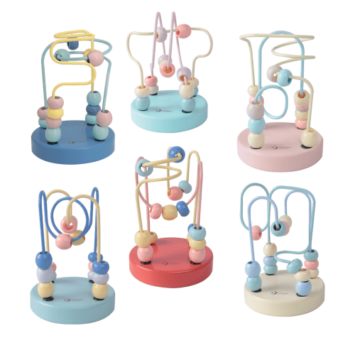 Children will develop their color recognition and motor skills by guiding the beads along the rails of these mini coasters. Ideally sized for very young children, you can take the Mini Beads Coasters anywhere! Mini Beads Coasters come in a display box of 6 (each display box contains 6 different coasters)!