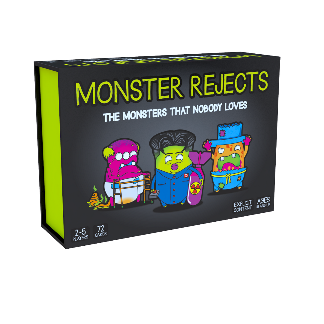 Monster Rejects is a ridiculous card game where a racist, homeless, senile, slutty and other reject monsters battle in four different realms.