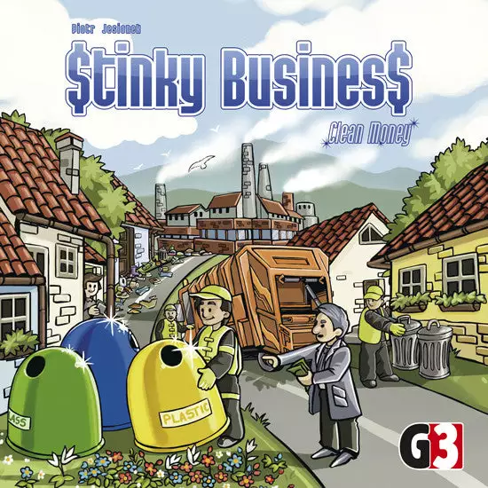 Stinky Business is a family game for two to five players of age 10 and up. The goal of the game is to build the most successful waste processing company, that will bring the highest income and the most victory points.